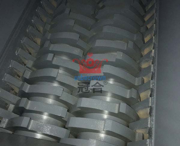 撕碎機設備可以配備篩網,雙軸撕碎機的篩網一般為滾輪篩網,一般像撕碎輪胎的時候比較常見,一般情況下雙軸撕碎機設備是不配備篩網的。撕碎機粒度調節是根 據使用撕碎機刀具決定的,主要的就是撕碎機刀具的厚度和撕碎機刀具爪數,目前常見撕碎機刀具厚度有 20mm,30mm,40mm,50mm,60mm,70mm,80mm撕碎機刀具厚度,雙軸撕碎機刀具的爪數有,雙爪,三爪,四爪,五爪,六爪,8 爪,9爪,12爪雙軸撕碎機刀片,撕碎機爪數越多,刀片厚度越小的,撕碎的顆粒就越小。